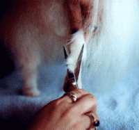 be helpful in show grooming. We use two pair of scissors, a small 5-inch