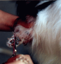 be damp. Sometimes the short hair on the top of the ear may appear to